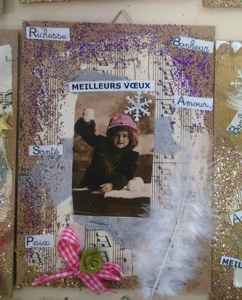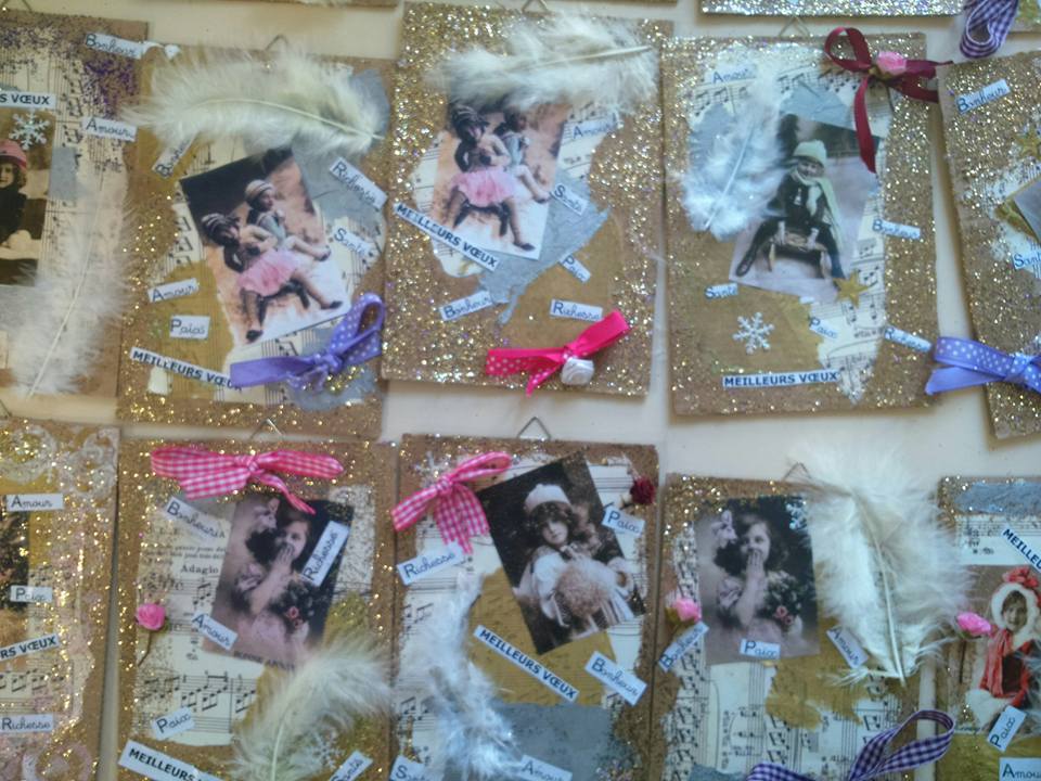 Terminées juste à temps pour le marché de Noël, nos suspensions/cartes de voeux sur support cartonné: