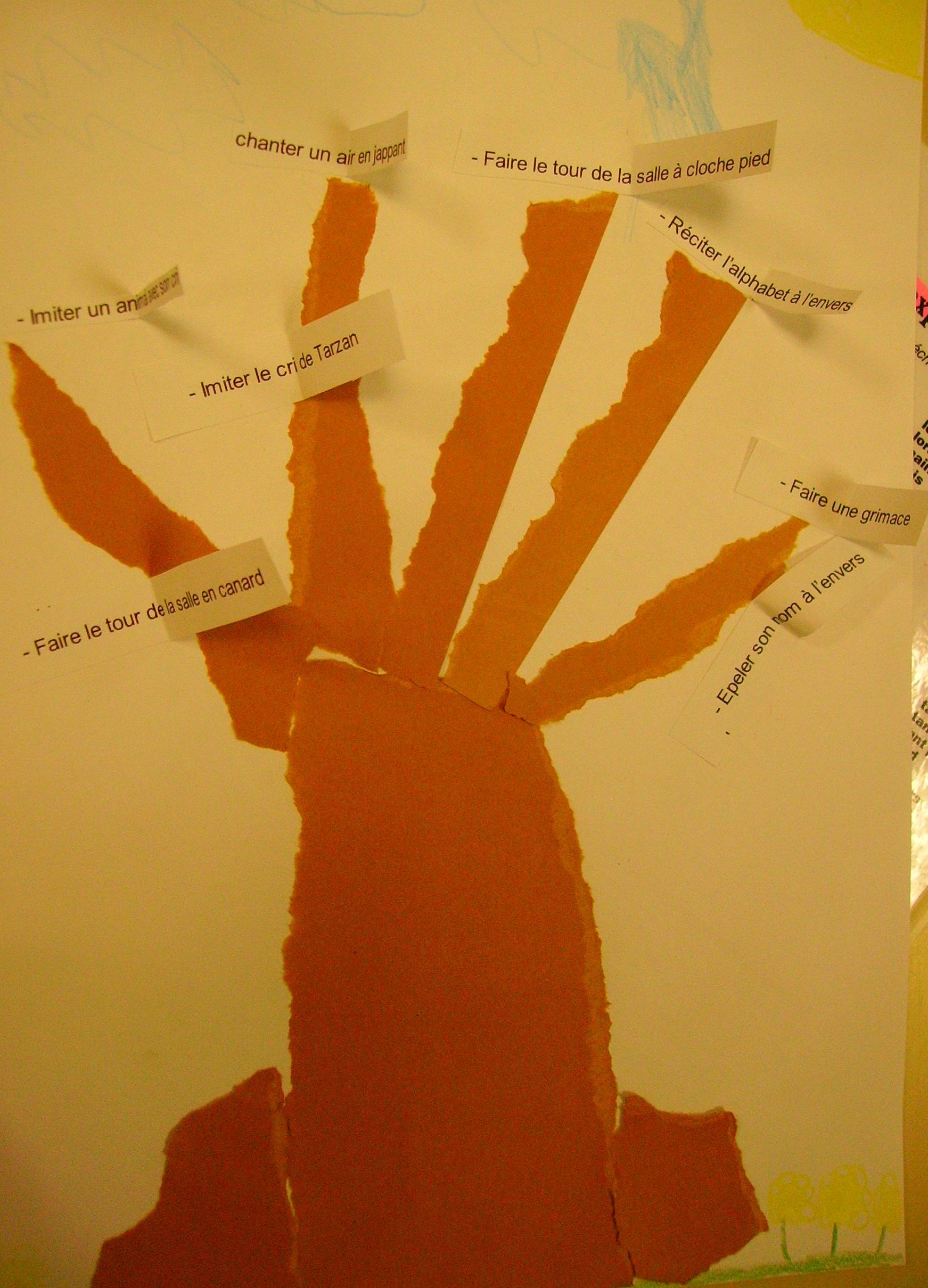 Je les ai incités aussi à jouer sur le "toucher" et la matière,et pas seulement la vue: nombreux sont ceux qui ont fait un arbre interactif dans lequel il faut déplier des petits papiers pour trouver le "fruit magique".
