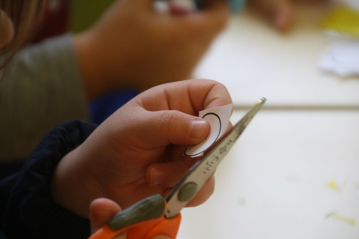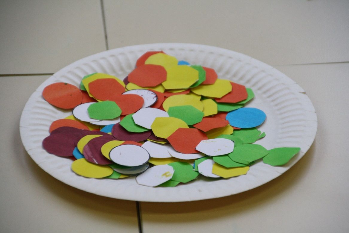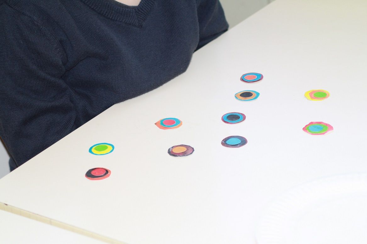 Ils ont ensuite peint à l'encre le verso de feuilles de canson imprimées avec des ronds de 3 dimensions différentes, les ont découpés: