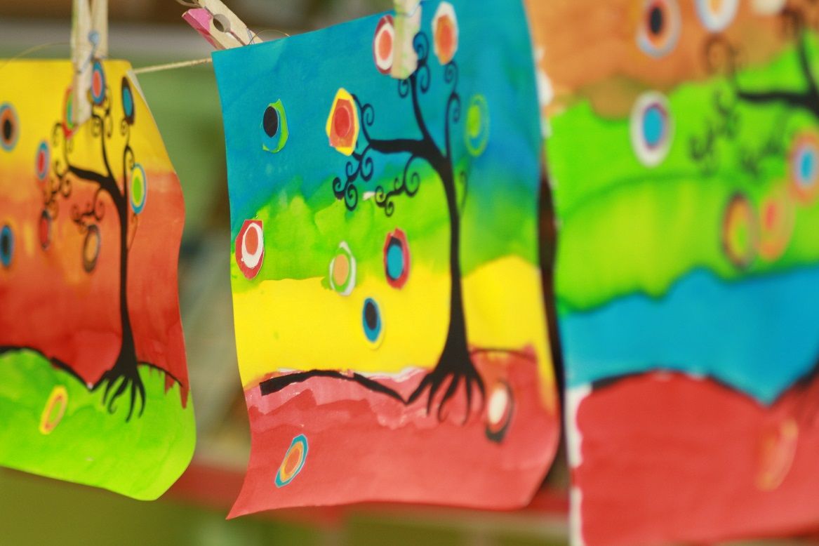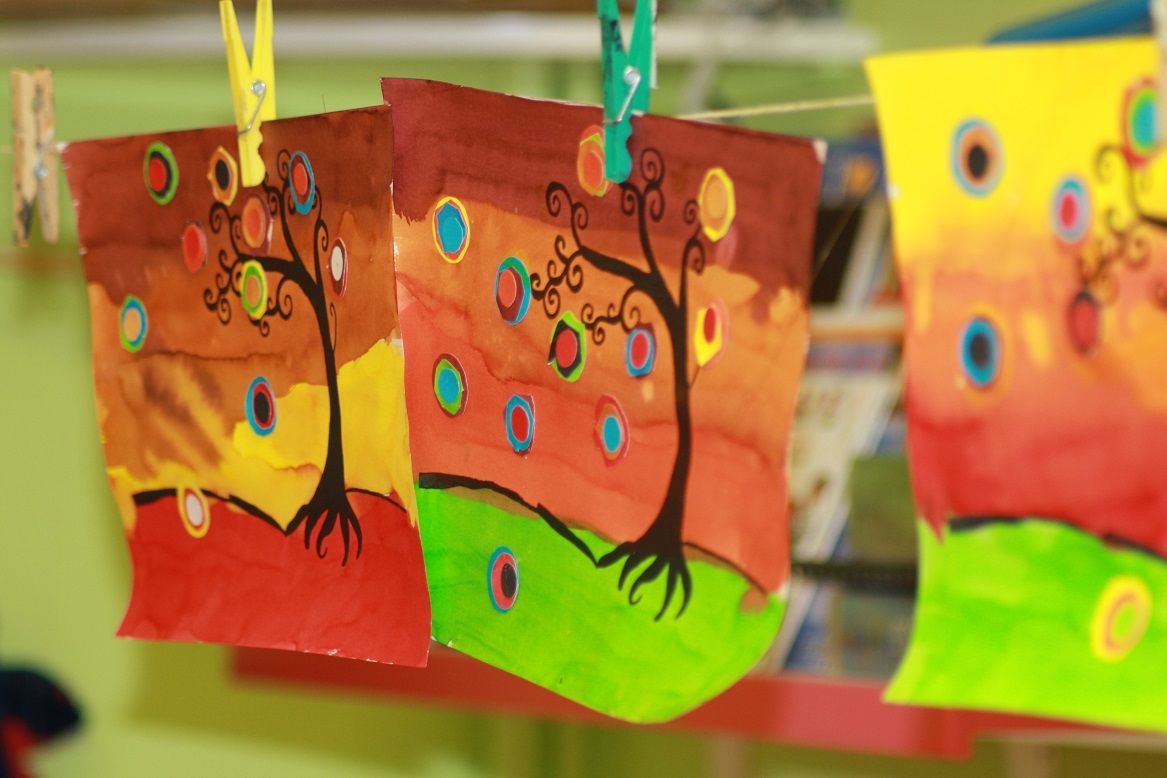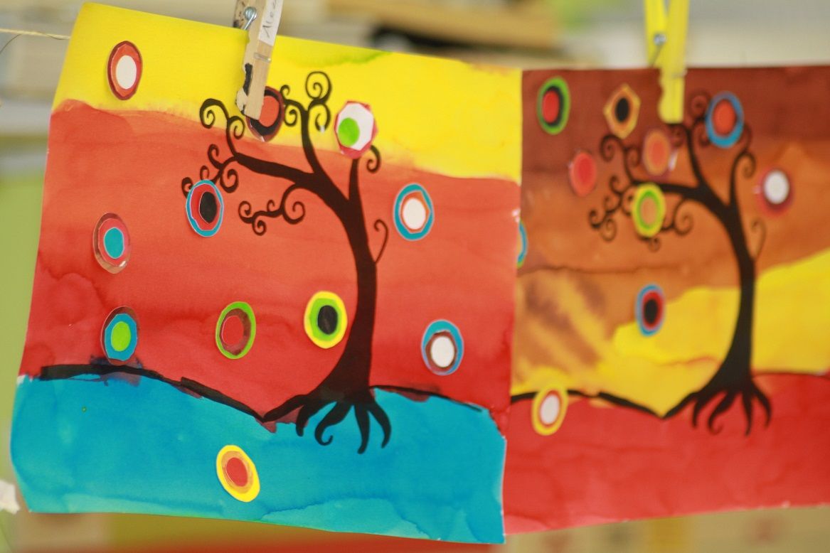 Les enfants ont peint à l'encre un support d'arbre vierge.